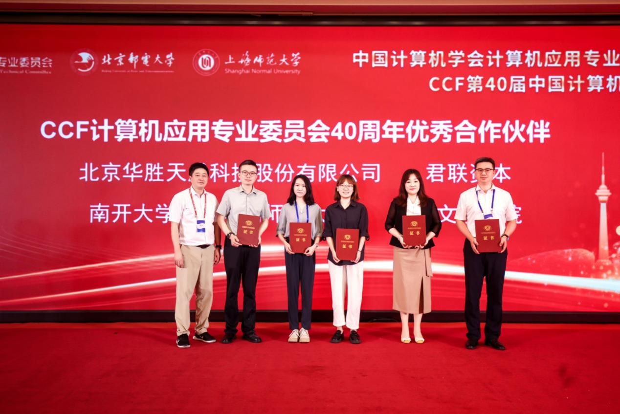 会上,杭波代表学校接受“中国计算机学会计算机应用专业委员会40周年优秀合作伙伴”颁奖,该奖项是中国计算机学会计算机应用专业委员会为优秀合作伙伴颁发的重要奖项之一,国内高校和产业界的5家单位获此荣誉。