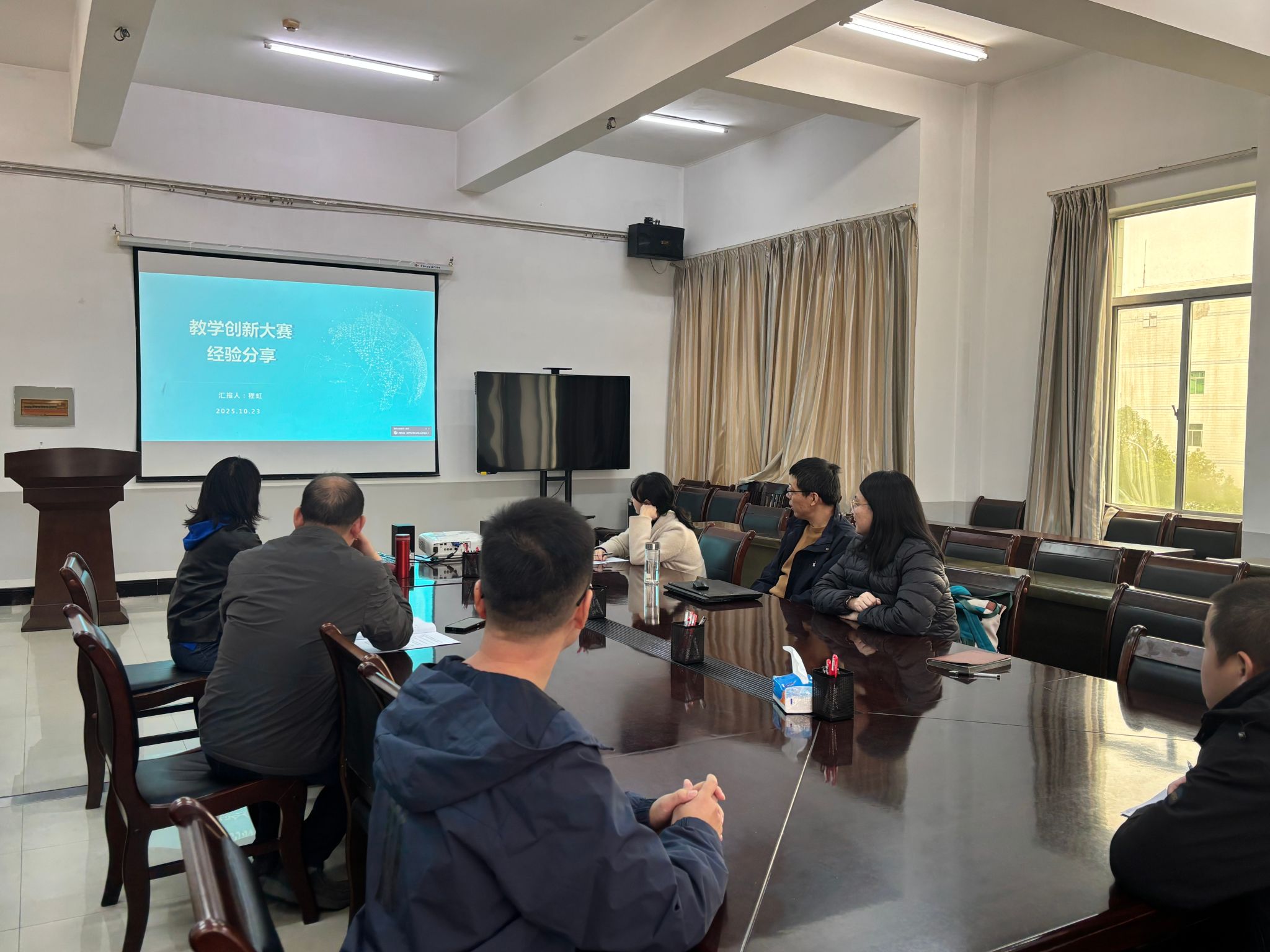 在交流研讨环节,参赛教师纷纷表示程虹老师的报告内容详实、启发性强,为后续备赛拓宽了思路。大家还就各自在准赛过程中遇到的困难与疑惑进行了深入交流。程虹针对老师们提出的问题逐一予以细致指导与解答。
