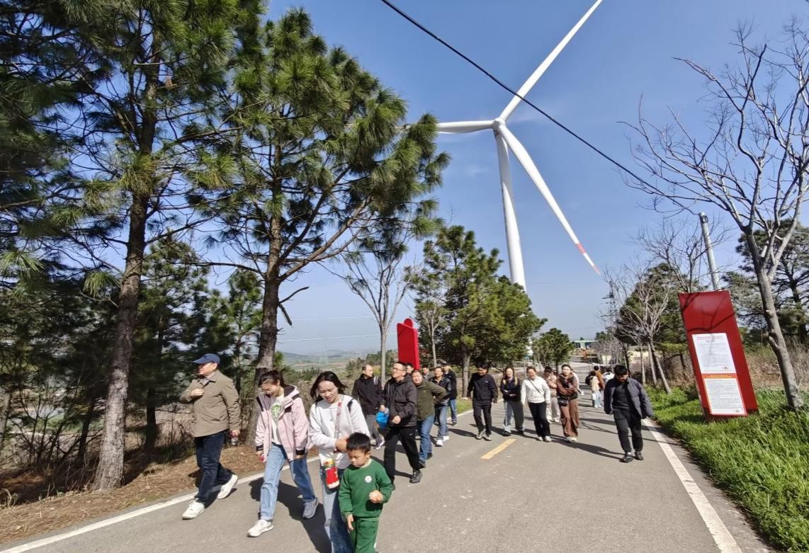 抵达向湾村后,教职工们前往这片襄枣宜交界区域的高处远眺,春日盛景尽收眼底。广袤的田野上,嫩绿的麦苗在微风中轻漾,宛如一片涌动的绿色海洋;远处巨型白色风车缓缓转动,与澄澈的蓝天白云交相辉映,构成了一幅如诗如画的田园景致。教职工们纷纷用手机记录春日美景,在清新的自然气息中感受静谧与生机,彻底舒缓了工作带来的疲惫。有的在村子里漫步拍照,用镜头捕捉春天的每一个细节;有的则结伴到田间地头采摘野菜,体验农耕生活的乐趣,感受大自然的馈赠。