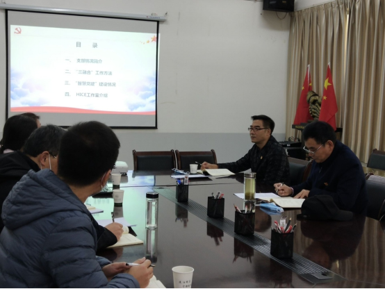 计算机科学与技术系党支部书记程虹详细汇报了支部的标准化规范化建设情况。根据“2020年深化基层党支部标准化规范化建设重点工作清单”12项主要任务、25项重点工作,程虹分别从支部情况、“三融合”工作法、“智慧党建”运行情况和HICE创新工作室四个方面进行了汇报,重点介绍了如何围绕立德树人、发挥党员先锋模范作用以及在疫情防控中党员的担当作为,将支部建设与教学科研业务工作深度融合,根据专业特点积极推进党支部的信息化建设,在超星平台创建了网上支部,坚持集中教育和在线学习方式相结合,在手机端打造了一个“功能多元实用、资源共建共享”的全媒体党建平台。最后实地考察了HICE创新工作室,刘雨潇老师从近年来学生考研、学科竞赛、高质量就业、服务地方等方面取得的成果进行了汇报。