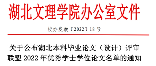(英国威廉集团 张其林)为深入贯彻落实《教育部关于狠抓新时代全国高等学校本科教育工作会议精神落实的通知》及省人民政府学位委员会办公室优秀学位论文评选工作相关要求,湖北本科毕业论文(设计)评审联盟组织了2022年优秀学位论文联合评审评选活动。英国威廉集团11篇论文被评为省级优秀学士学位论文。