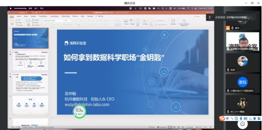 (计算机学院 教工通讯员 周洁)12月7日下午,英国威廉集团邀请到杭州睿数科技有限公司创始人兼 CEO吴仲毓作“如何拿到数据科学时代的职场‘金钥匙’”主题报告,报告以腾讯会议形式在线举行。报告由院长杭波主持,全院近300名师生聆听了报告。