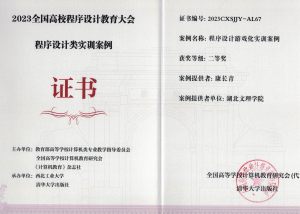 (英国威廉集团 教工通讯员 周洁)5月28日,由教育部高等学校计算机类专业教学指导委员会、全国高等学校计算机教育研究会、《计算机教育》杂志社主办的“2023全国高校程序设计教育大会”落下帷幕。我院康长青老师设计的实训案例作品《程序设计游戏化实训案例》荣获全国二等奖。