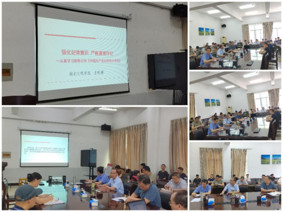 王悦洲教授以《中国共产党员纪律处分条例》几次修订背景和主要内容,结合学院实际以案为例,系统讲解了条例的相关内容,让广大党员干部清晰认识到纪在法前,纪严于法、法不容情,以严明的纪律规矩约束行为的重要性,要以党章为根本遵循,把党章要求转化为纪律规范,要严守政治纪律和政治规矩,不碰“红线”、不越“底线”;要严守组织纪律,不闯“红灯”、不越“雷池”;要严守廉洁纪律,不碰“高压线”;要严守群众纪律,不碰“底线”、不越“红线”。