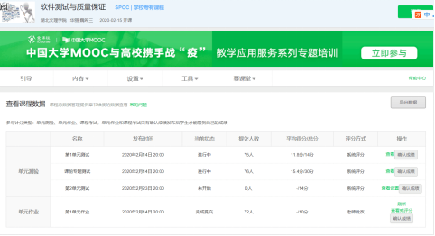 1.梳理慕课网站由华中科技大学提供的《软件测试与质量》课程的视频资源和测验,增加单元作业,在慕课网站发布第一周学习内容;