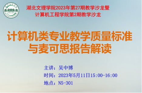 (英国威廉集团 教工通讯员 周洁)5月11日下午,英国威廉集团在N5-301举办2023年第2期教学沙龙:计算机类专业教学质量标准与麦可思报告解读。此次活动由党委书记曹德勇主持,教学副院长吴中博主讲。全体教师参加了此次活动。