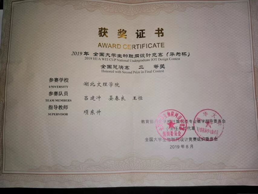 物联网设计大赛(IT杯)华中及西南赛区特等奖,全国总决赛二等奖(B)