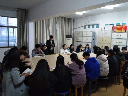 会议开始,邱越先带领大家回顾了这一周里学生党总支参与的活动,并请组织活动的干事们发言总结,分享经验。大家一致认为本周同学们对待活动积极认真,体现了学生党总支的风采。接着,邱越对下一周的工作进行了具体安排。随后,学生党总支2019年的第一次读书交流活动开始了。在交流活动里,学生党总支的干事们依次发言分享自己最近看过的书,讲述自己看书过程里的所思所想,所悟所得。其他成员认真聆听,并积极地表达自己的看法或提出疑问。在分享交流的过程中,大家的思想产生了交流、碰撞,成员们不仅了解到更多好书,也收获了不少知识。