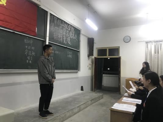 面试先由各位参加竞选的新生依次做自我介绍,并讲述自己竞选的理由。由于同学们刚进入大学,比较紧张,一开始都不太放的开。到后来,大家都是各显其能、充分展现自己。党总支各部长在每个同学介绍完自己后也进行了提问,以便更了解大家的情况。在提问过程中有的同学滔滔不绝,回答有条不紊;有些同学则稍显不自信、紧张,但无论紧张或从容,他们都在展现着自己最优秀的一面,透露着自己蓬勃的朝气。两个多小时的时间转瞬即逝,在一次又一次热烈的掌声中,本次招新竞选圆满结束。
