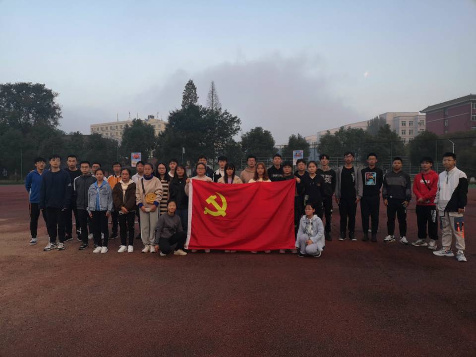 早上7点整,参与晨跑的同学准时在操场上集合,整装待发。纪检部清点人数后,晨跑开始了。迎着清晨的第一缕阳光,旗手稳稳握住党旗跑在队伍前列,大家紧随其后。方阵整齐有序,展现出同学们良好的精神面貌。