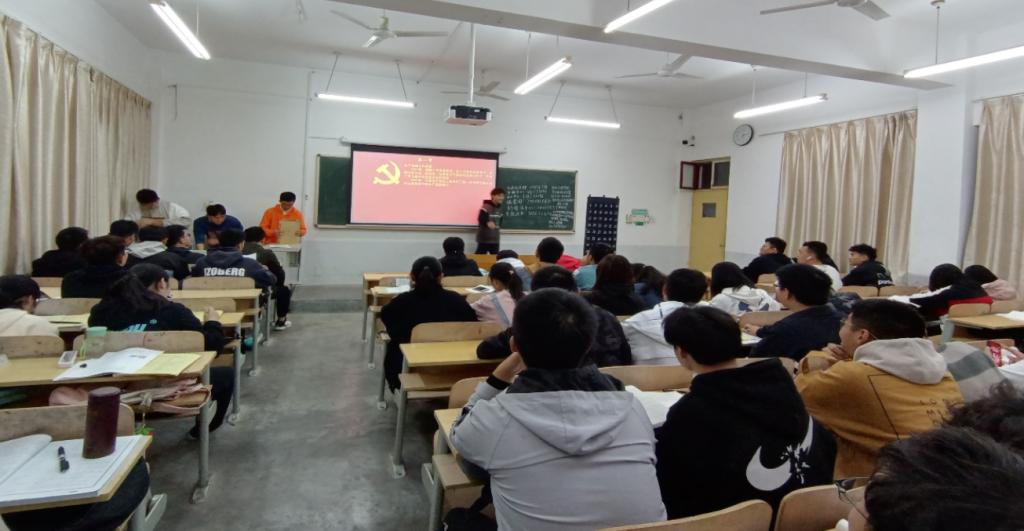 班会伊始,心理委员刘甜通过讲解PPT对本次班会进行了简单的介绍,从自己对班会主题的理解,分享个人的经历核感悟。班长唐京播放PPT,带领全部同学一起学习党的成长历史,使同学们了解到我党成立以来,带领全国各族人民把半殖民地半封建的旧中国建设成为举世瞩目、繁荣富强的社会主义新中国的艰辛历史,震撼同学们的心灵。