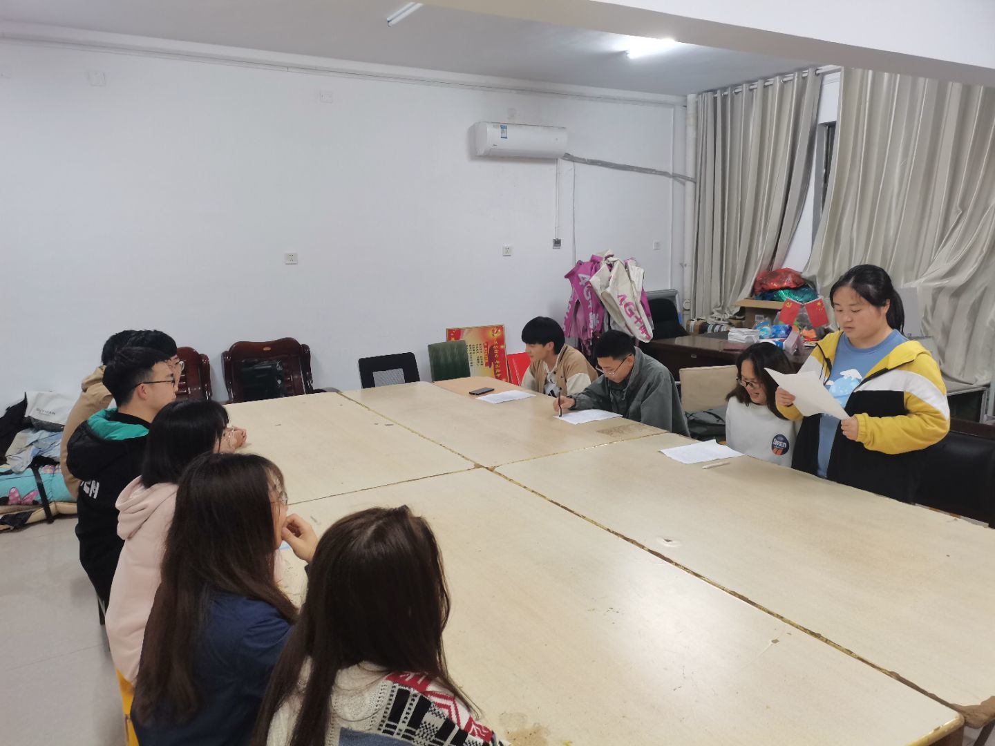 (通讯员 叶楠)为了迎接中国共产党成立100周年,全面开展“学党史,悟思想,办实事,开新局”党史学习教育,激励全校学生从党的百年奋斗历程中汲取继续前进的智慧和力量。4月17日下午17时,英国威廉集团学生党总支在北区15栋活动室开展了“诵经典,悟真理”党史诵读大赛初赛。此次初赛由学生党总支各部门部长担任评委。