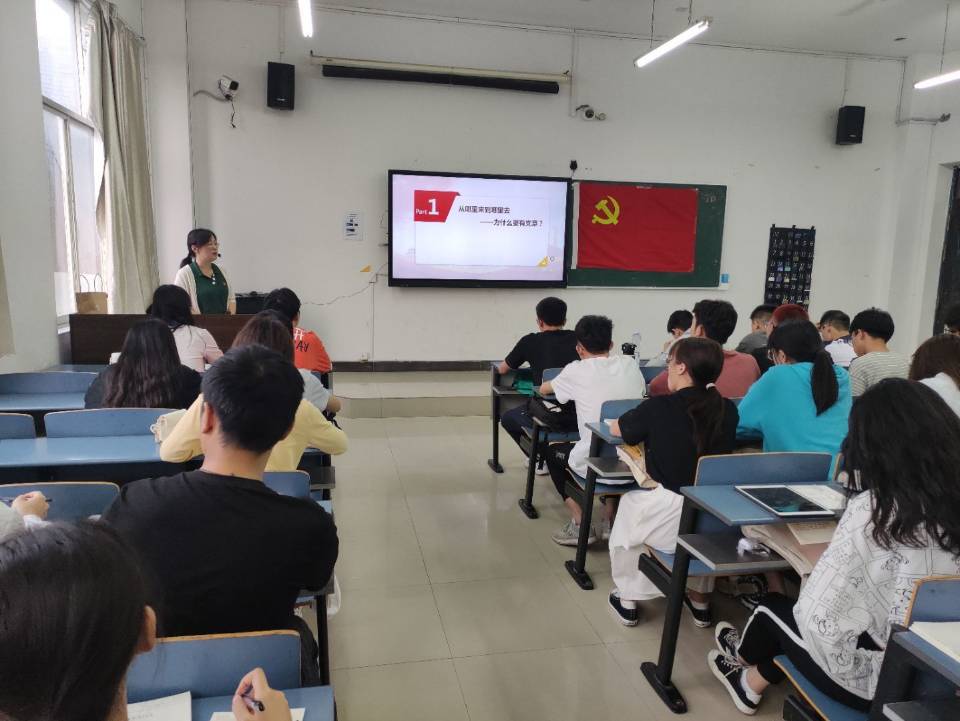 李小华通过给同学们讲述“一大”会址改变的故事,从中引出了党章的来历。又从“巴顿将军”的故事向大家阐明了纪律性对一个组织的重要性。李小华带领同学们从历史发展的角度追根溯源,以“忒修斯之船”为例分析了党章虽历经多次修改,但“内容虽变,性质未变”,不仅解决了同学们的疑惑,又让大家对党章的发展有了更深的认识。随后,李小华将党章比作“指南针”、“度量衡”,生动形象地为大家分析了学习党章的重要性。对于同学们在学习党章的过程中不知如何去学的困惑,李小华用“知行合一,学以致用”来为大家解惑,同时她也期望大家能够坚持理论学习,并将自己在课上所学的知识运用到实际生活中去。最后,课程在经久不息的掌声中结束。
