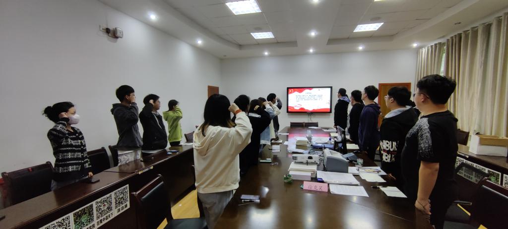 活动伊始,全体党员齐唱国歌、重温入党誓词。支部书记秦文杰带领大家学习《习近平在中央党校(国家行政学院)中青年干部培训班开班式上发表重要讲话》和《中共中央办公厅印发<关于推动党史学习教育常态化长效化的意见>》。随后,结合文件所学内容,学生党员围绕“如何从自身建设好党支部”这一主题开展讨论,并在小组间进行了交流发言。