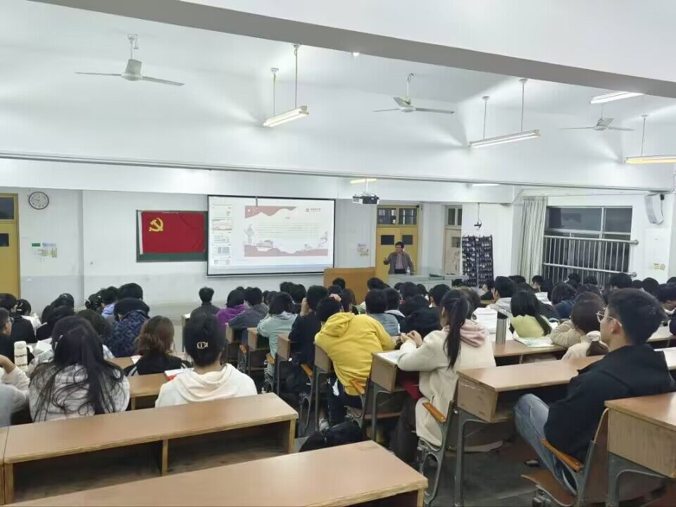 高其文首先从“巴以冲突”引出“今天世界格局动荡,我们所处的环境外部危险加剧”的问题。随后他以“苏联解体”引出意识形态斗争的问题,指出习近平总书记强调意识形态工作是党的一项极端重要的工作,从这个例子也可以看出,很多看似很坚固,很牢靠的政权,由于思想上的防线失守,导致了其他防线的全盘失守,从而导致政权更迭。如果我们守住了思想防线这个前沿阵地,那么其他防线相对来说出问题的可能性就不大。接着,他强调:“青年同学们要清楚我们党从哪里来,将要走到哪里,遇到问题将要怎么处理。”最后,高其文教导同学们不受外来势力的鼓动,擦亮自己的眼睛,提高警惕性和意识形态鉴别力,善于从政治角度看问题,善于抓住关键,避免掉入话语陷阱,为建设社会主义现代化强国贡献自己的一份力量。