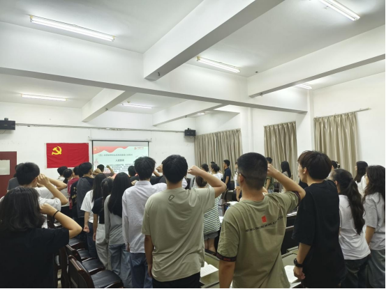 尚宇航作为教师代表向毕业生党员们赠送精心准备的学校文创明信片并带领大家再次重温入党誓词。