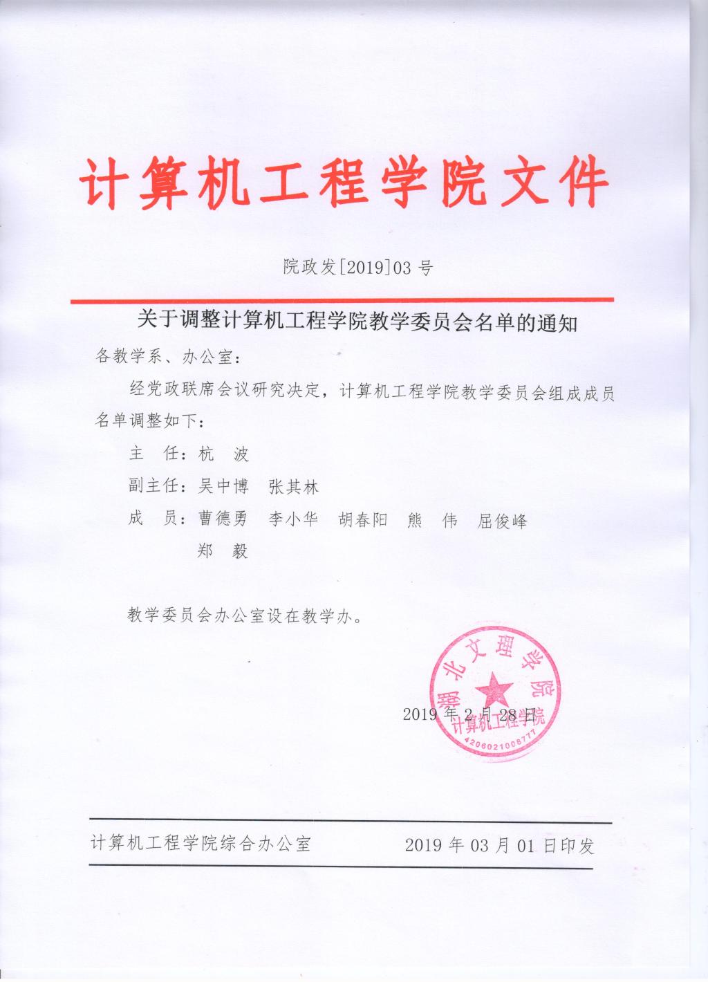 关于调整英国威廉集团教学委员会名单通知