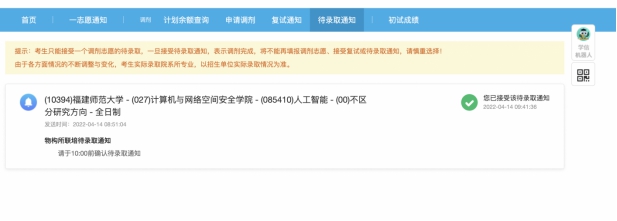 考研初试结果不是特别理想,与一志愿学校相差4分,但是付奇强并没有放弃,仍然积极准备调剂,收集调剂信息。微信公众号,学院研究生官网,科研院所官网,付奇强浏览了很多信息,最终挑选出三个心仪的学校。调剂过程中时机很重要,所以要具备信息搜集能力和决策能力,正确的选择加上充分的信息收集,调剂成功的概率才会大大增加。
